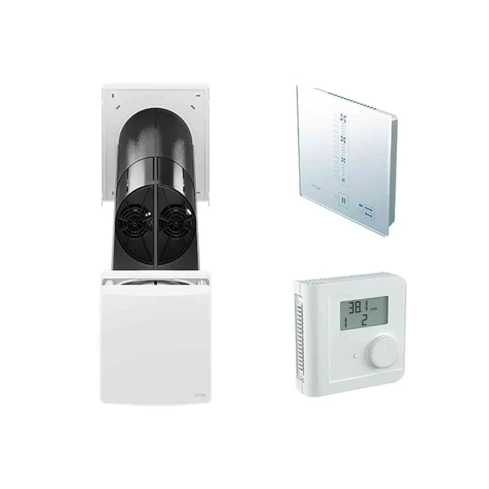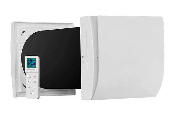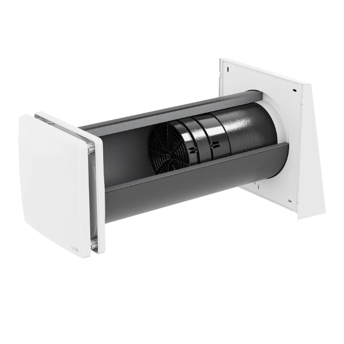 La double-flux décentralisée pour les pièces de vie. La Versus Silent possède un ventilateur réversible avec capteur de température et stabilisateur de pression du vent. Cette double-flux décentralisée est considérée comme l’un des modèles de ventilation les plus silencieux du marché !